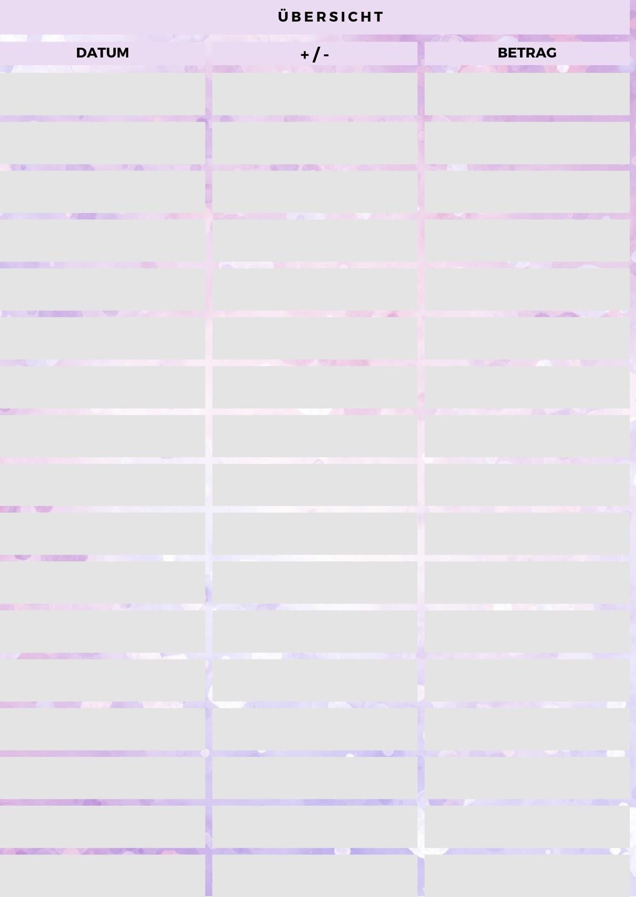 Diese wunderschönen Budgetplaner im A6 Format mit einem ausgefallenem Farbverlauf gibt es inklusive 6 Folien (Taschen), 6 Budget-Sheets sowie 6 Blanko Kategorien als Deckblätter und sind farblich abgestimmt und somit ein wahrer Hingucker.