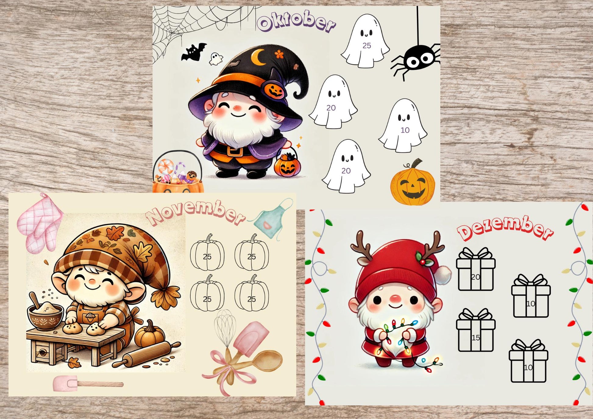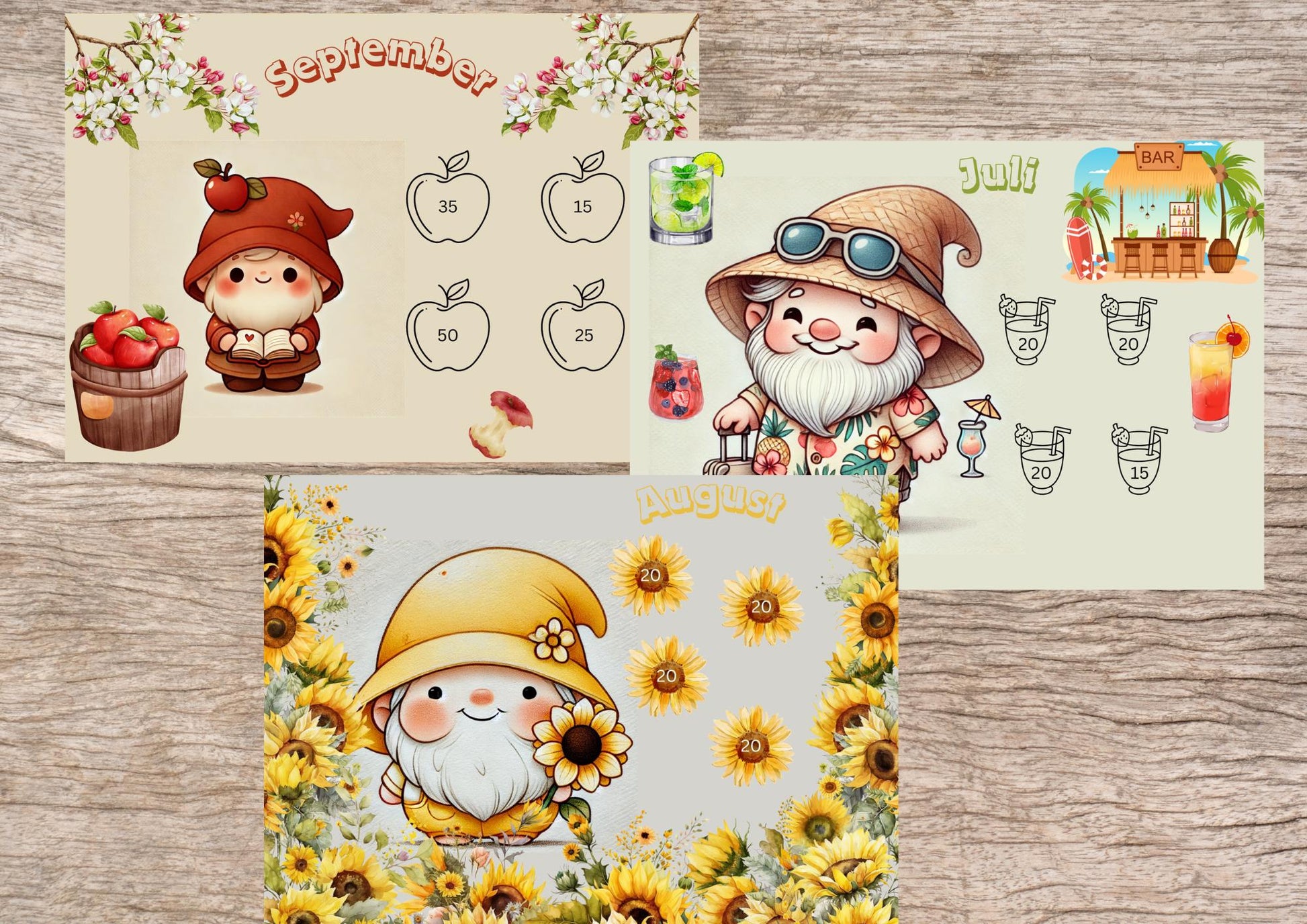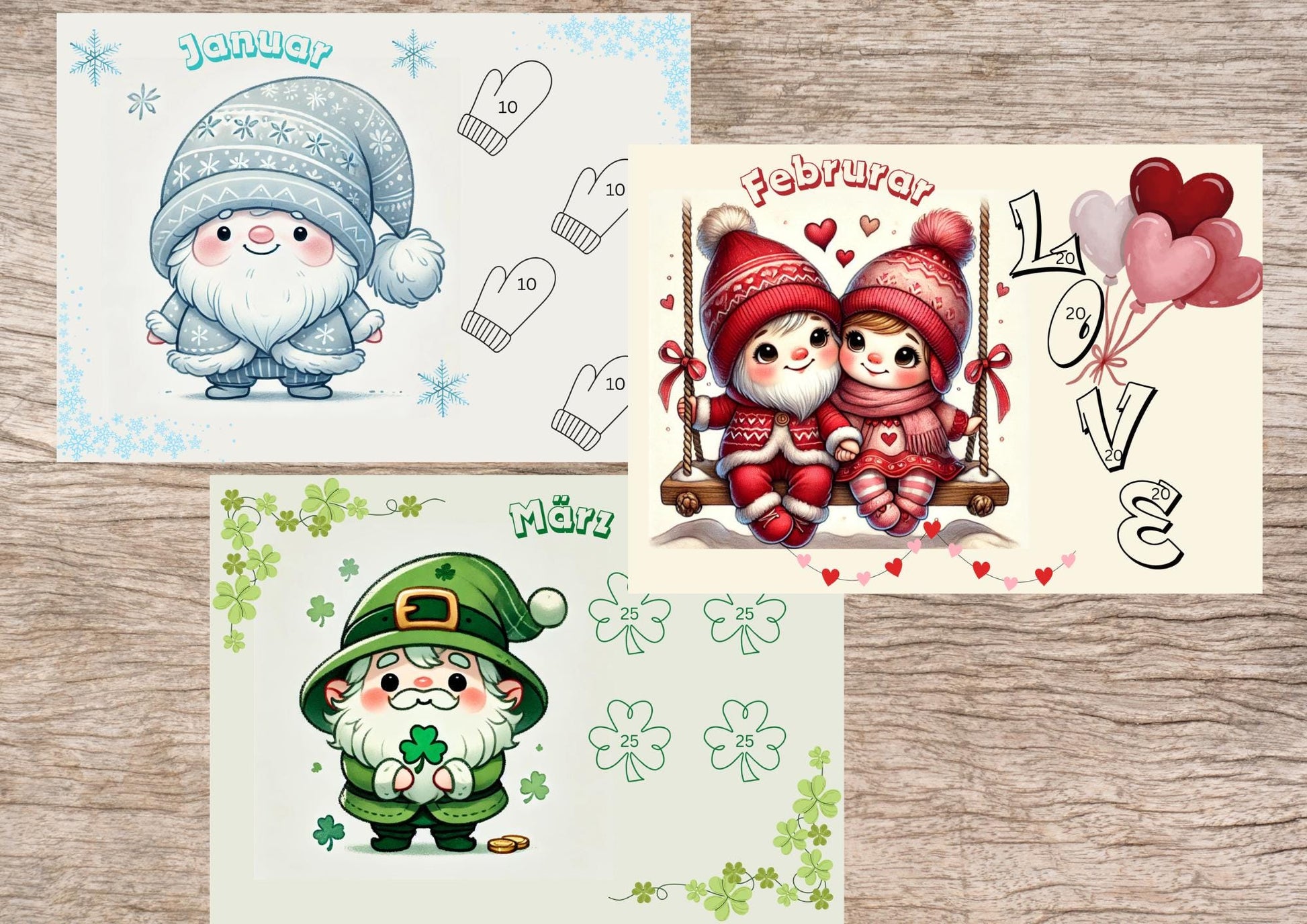 Warum diese Challenge? Ob für Urlaub, Weihnachten, ein neues Projekt oder einfach als finanzielle Reserve – mit kleinen, monatlichen Sparzielen erreichst du ganz entspannt dein Ziel. Und das Beste: Jeder Monat fühlt sich an wie ein kleines Spiel mit den knuffigen Gnom-Freunden!