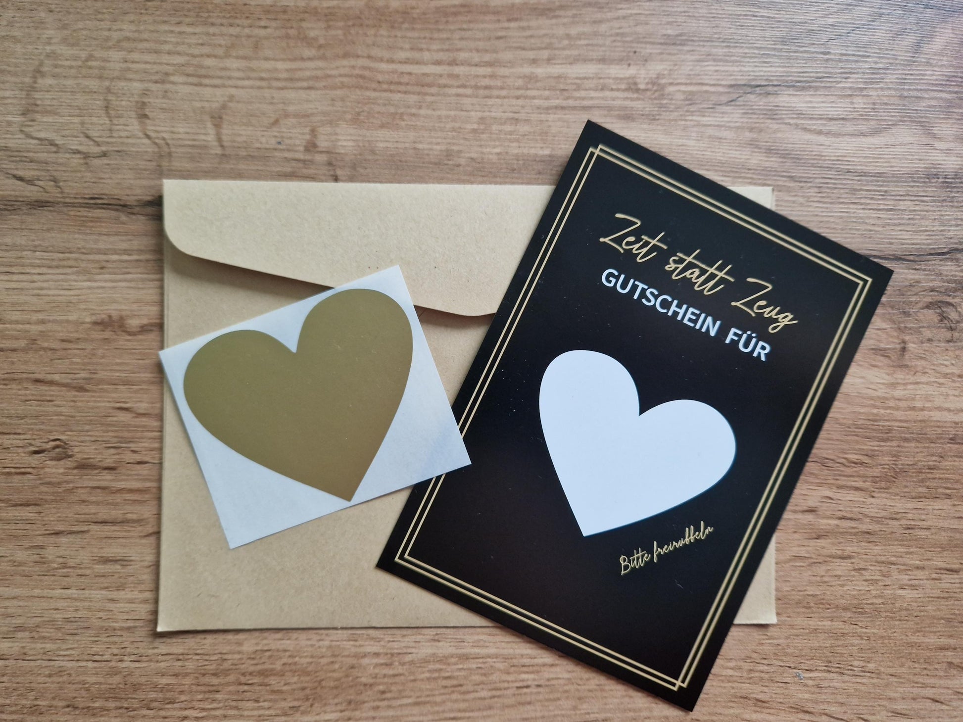 goldenes Herz zum aufkleben über den Text zum späteren Freirubbeln