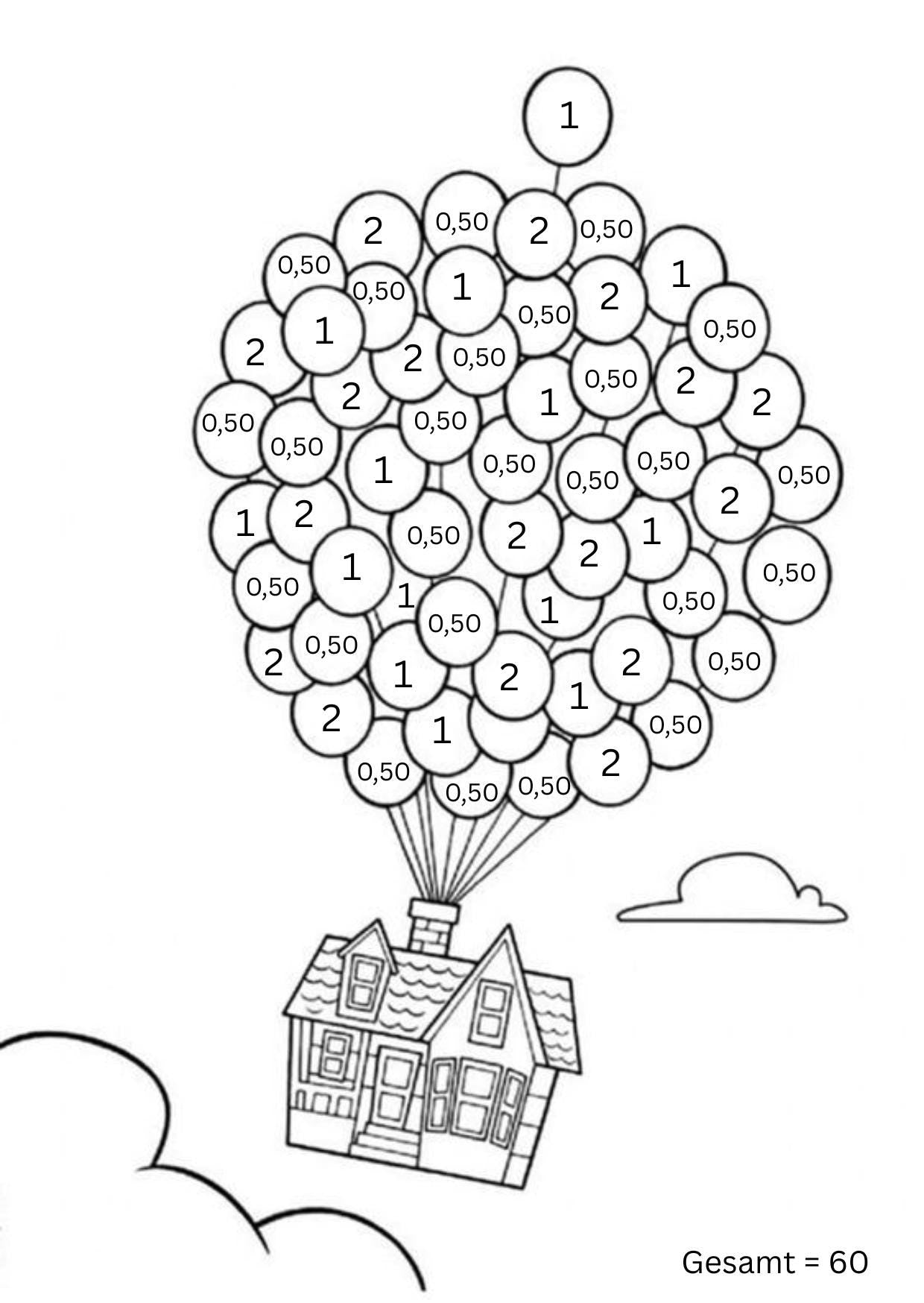 2️⃣ Haus mit Luftballons – 60 € Sparziel Inspiriert vom Abenteuergeist, zeigt dieses Design ein süßes Häuschen, das von bunten Luftballons getragen wird. Jeder gesparte Betrag bringt dich dem Traum vom eigenen kleinen Wunschziel näher – sei es ein neues Dekostück, ein Wochenendtrip oder ein besonderes Erlebnis.