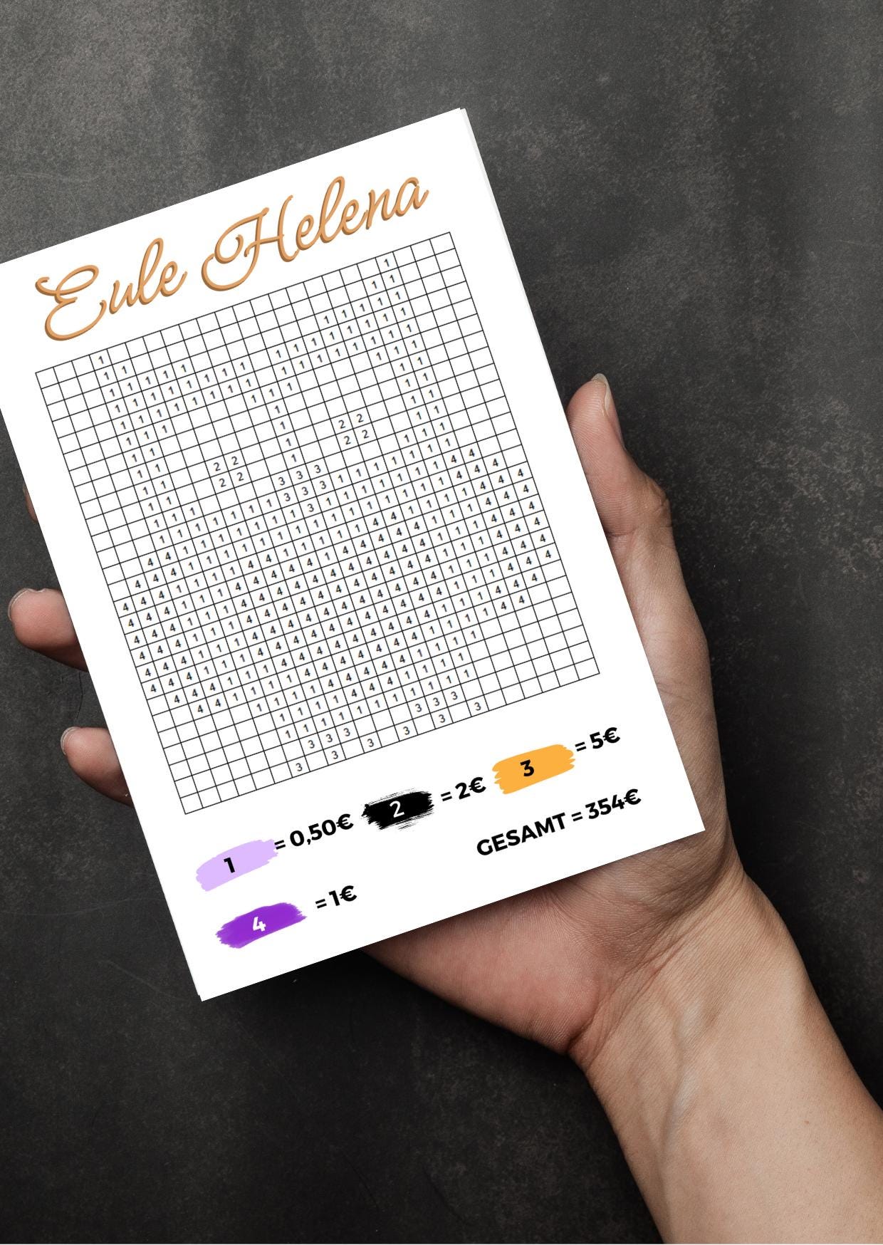 Diese schöne Sparchallenge bringt nicht nur Freude beim Sparen sondern auch beim Ausmalen und kombiniert so deine Kreativität mit deinem Sparziel und vielen schönen Farben.